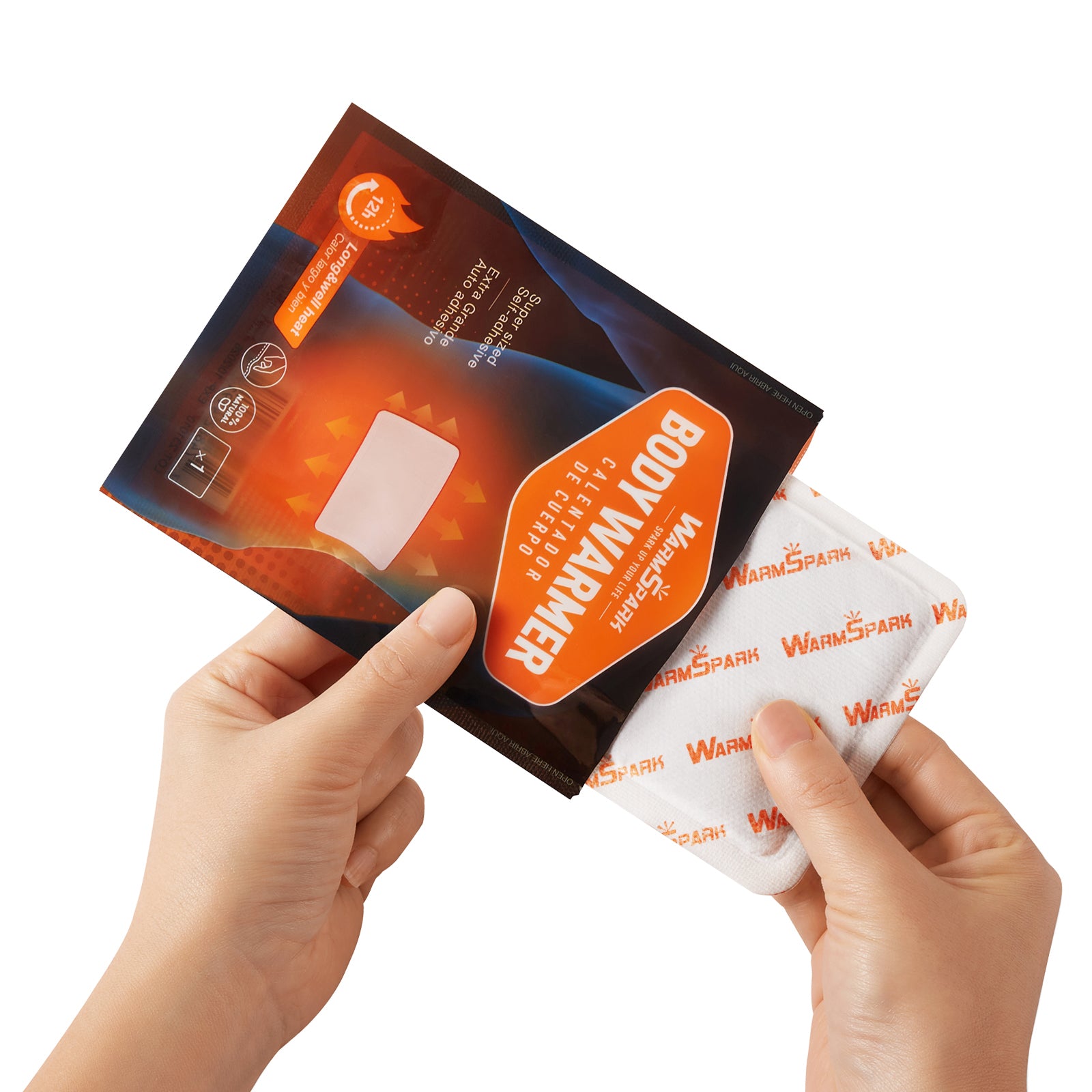 - Easily use: Open the packaging and the body warmers will heat up by themselves after a few minutes. Peel the protective film from the back and apply to the bottom layer of clothing